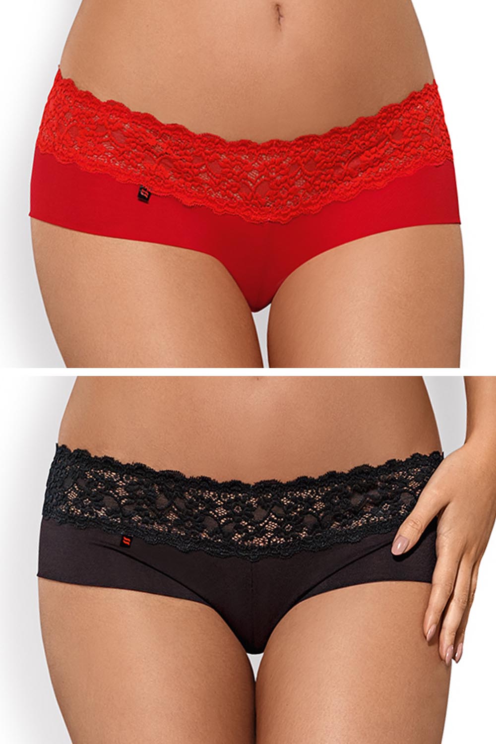 Subtle shorties in three colours! • finished with sexy lace • charming satin bow on the front • transparent material exposes tempting back • delicate, pleasant fabric (94% polyamide, 6% elastane) • available colours: black, white, red • category: sexy • sizes: S/M, L/ XL